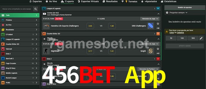O 456Bet App oferece uma grande seleção de opções de apostas em e-sports com probabilidades competitivas